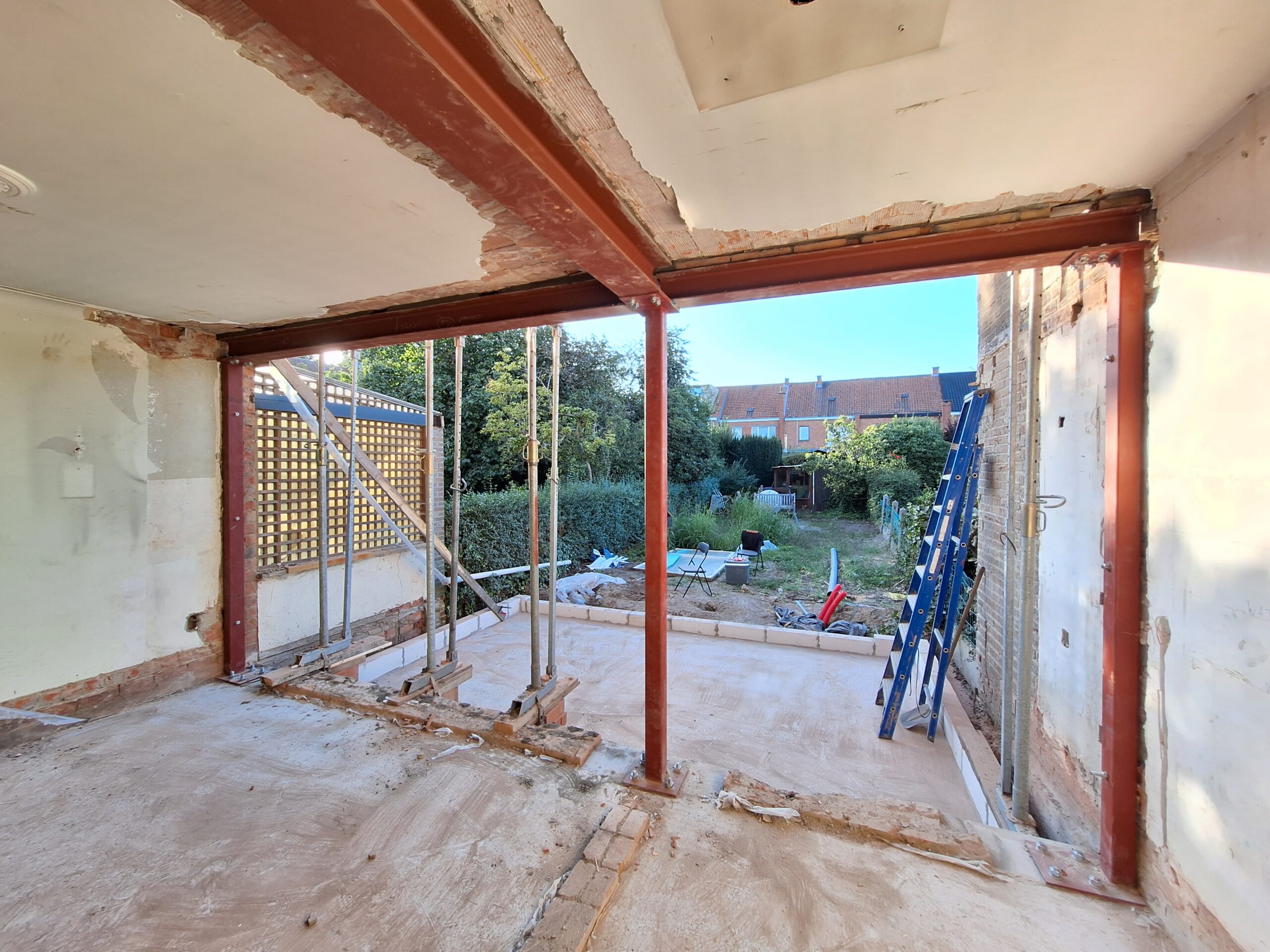 De renovatie van dit rijtjeshuis in de Molenwalstraat in Gent heeft geleid tot een moderne, energiezuinige woning die niet alleen voldoet aan de hedendaagse eisen van comfort en duurzaamheid, maar die ook de karakteristieke elementen weet te behouden die dit huis zijn unieke charme geven. Het resultaat is een harmonieuze mix van oud en nieuw, waarbij de historische details zorgvuldig zijn geïntegreerd in het vernieuwde ontwerp. Het huis is nu een comfortabele en duurzame leefomgeving voor de bewoners, die hier volop kunnen genieten van zowel de praktische indeling als de esthetische waarde van hun woning. Bovendien biedt het grote panoramaraam aan de achterzijde een schitterende kijk op de kleine maar gezellige tuin, die perfect is voor ontspanning en sociale bijeenkomsten. Deze renovatie belichaamt niet alleen de vooruitgang in woningbouw, maar ook de liefde voor het behoud van cultureel erfgoed in de stad.